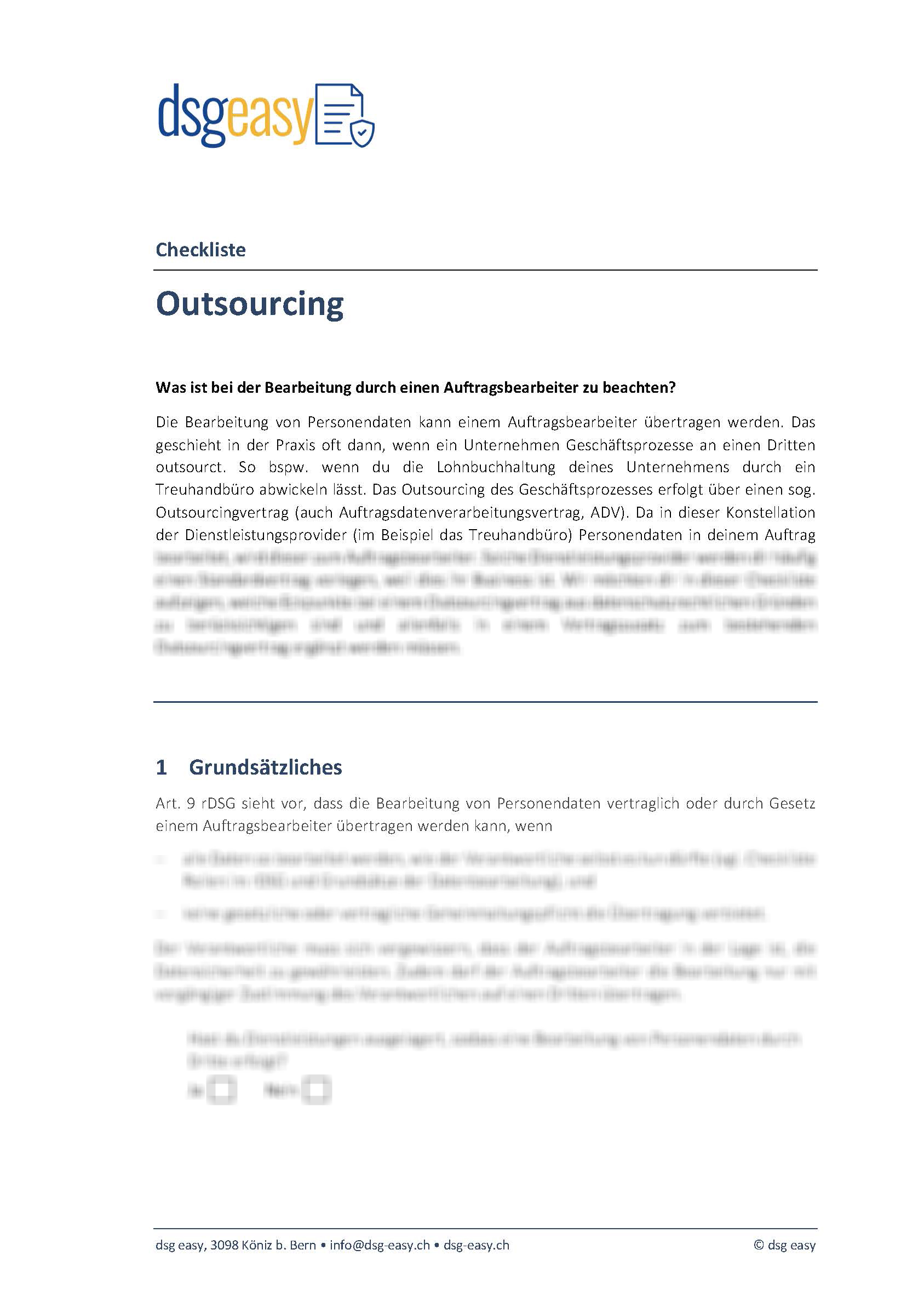 In diesem Fall bearbeitet der Dienstleistungsprovider Personendaten im Auftrag des Unternehmens. Grundlage hierfür ist ein Outsourcingvertrag (Auftragsverarbeitungsvertrag, ADV).